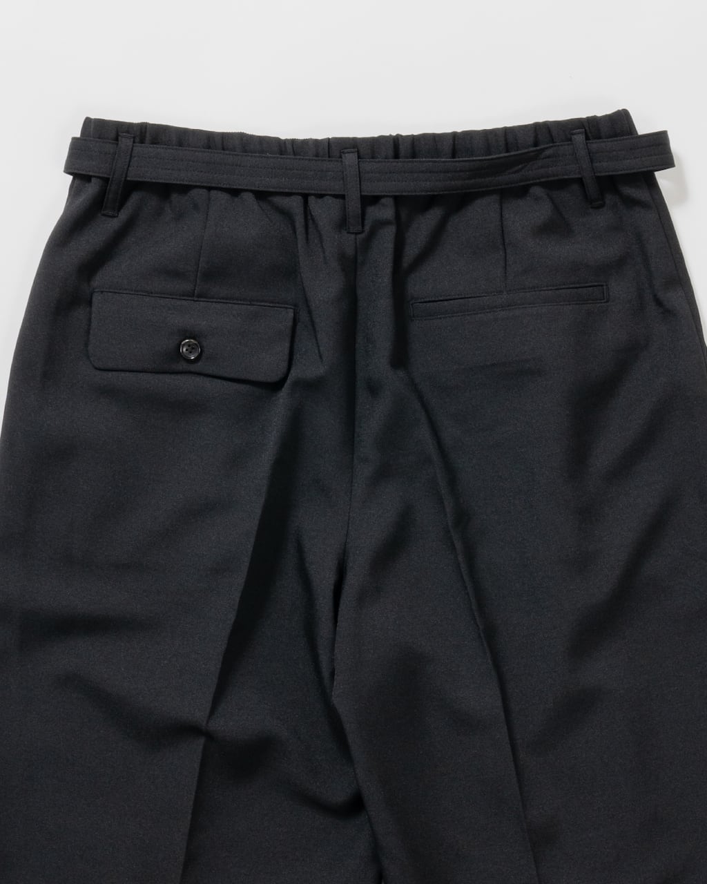 強撚ウールのようなドライタッチを表現した経糸が東レのリサイクルポリエステル糸で出来た玉虫色のチノスラックスです。