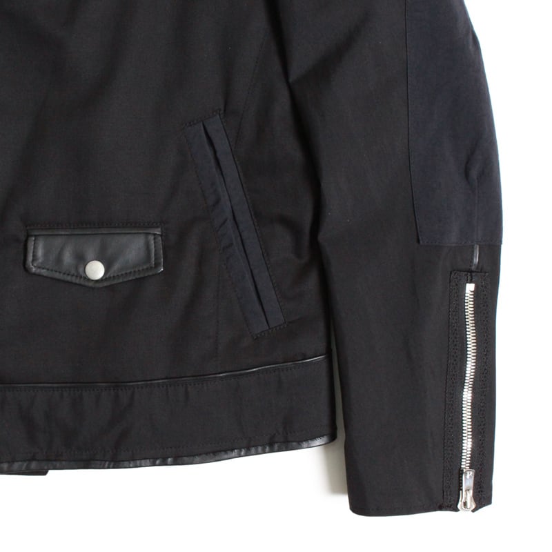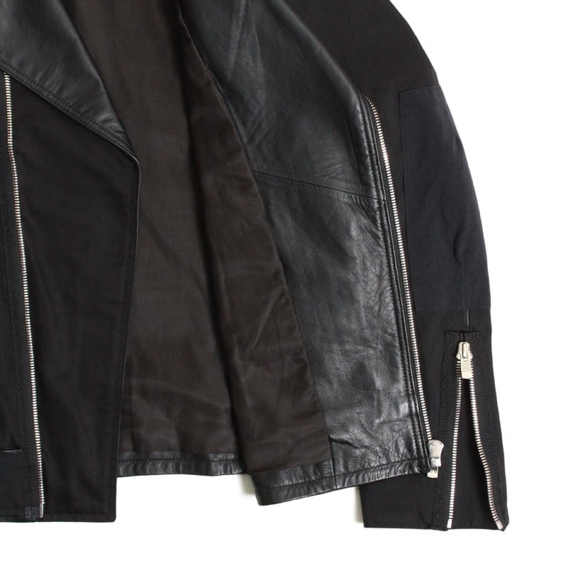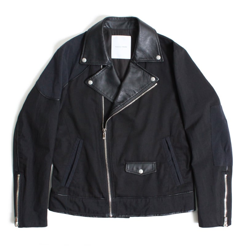 ベーシックなライダースをベースに異素材の組み合わせのインパクトがありながらも素材一つ一つがうまく融合し合う絶妙なバランス感を創り出しています。